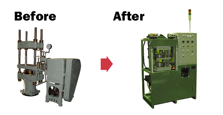 使用されなくなった旧型プレス(成型機)を選別、良品をベースにレトロフィット。